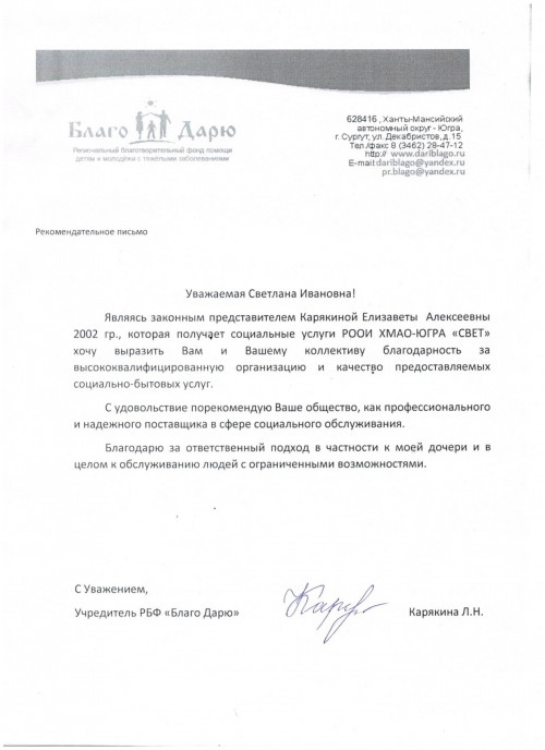 Благодарственные письма